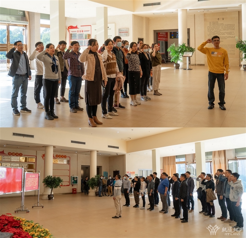 參觀結(jié)束后,公司黨員干部面向鮮紅的中國(guó)共產(chǎn)黨黨旗,莊嚴(yán)地舉起右手,重溫入黨誓詞?!拔抑驹讣尤胫袊?guó)共產(chǎn)黨……隨時(shí)準(zhǔn)備為黨和人民犧牲一切,永不叛黨。”