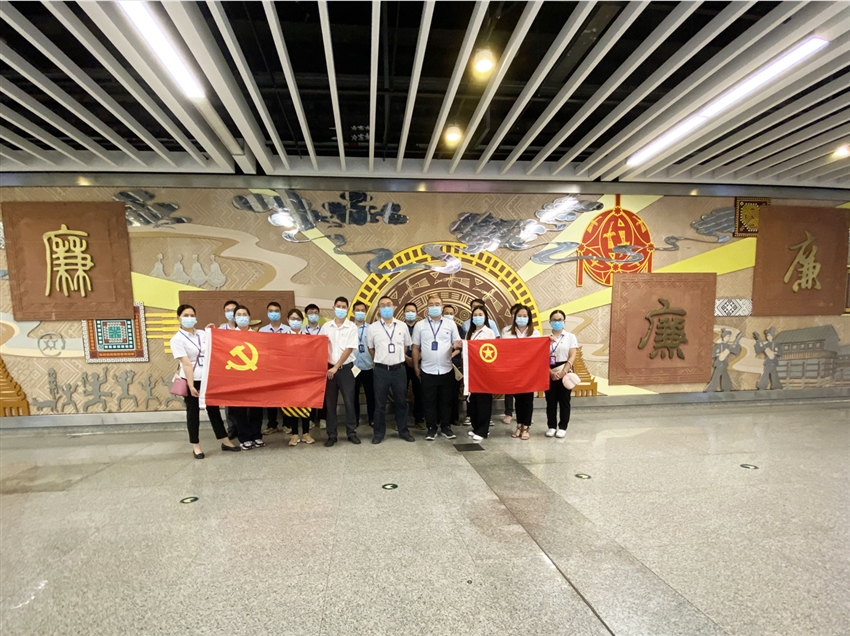 為切實加強黨風廉政教育,進一步提高黨員干部的拒腐防變能力,筑牢拒腐防變的思想防線,20221029上午,軌道地產(chǎn)建筑公司黨支部聯(lián)合廣西佳利工貿(mào)公司黨支部來到南寧地鐵2號線廉政文化主題車站——“南寧劇場·綠城青蓮站”開展廉政教育主題黨日活動。