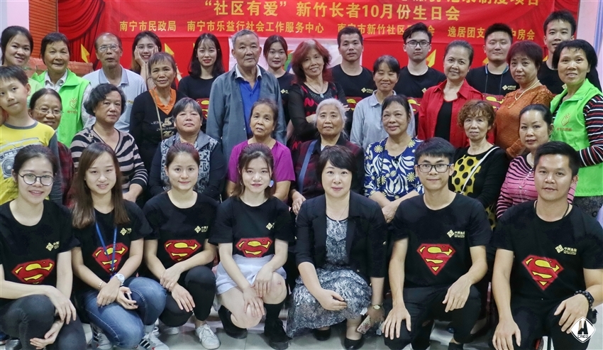 "祝你生日快樂!祝你生日快樂!" 祝福的歌聲和掌聲不斷響起來。2017 年 11 月 1 日下午,在青秀區(qū)新竹社區(qū),十幾個(gè)老人聚在社區(qū)的一間活動室里,參加 "社區(qū)有愛"新竹社區(qū)長者 10 月份生日會,一起慶祝生日。本次關(guān)愛社區(qū)老人公益活動由南寧市樂益行社會工作服務(wù)中心、新竹社區(qū)居委會和逸居公司團(tuán)支部、中房會等聯(lián)合舉辦。