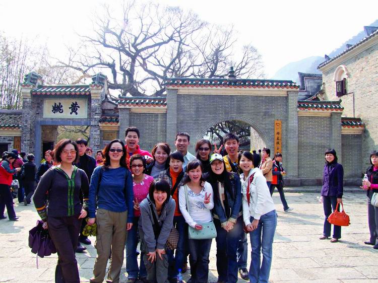 第三日清晨,整裝待發(fā)八點(diǎn)前往黃姚古鎮(zhèn)。賀州是粵東的一座新興城市,而黃姚,卻有著近千年的厚重。從古鎮(zhèn)入口前左邊的一條岔路走進(jìn)去,首先觸目的便是一條清澈的小溪、一棵參天的古榕樹(shù),我們開(kāi)始細(xì)細(xì)觀賞這個(gè)小鎮(zhèn)。古榕的軀干伸向小溪,又從空中垂下縷縷氣根,與水中的倒影連為一體。溪邊水井里清可見(jiàn)底,偶有小魚(yú)游動(dòng)。據(jù)說(shuō)黃姚是按九宮八卦陣式布局,鎮(zhèn)上的石板街有8條,共99999塊青石板,最早鋪砌于清順治年間。年代久遠(yuǎn),不知有多少人走過(guò),青石板已被磨得像鏡子般光滑,隱約泛著人影。橋下的姚江,如今看水依舊清碧,可是繁華不再,顯赫的牌匾也只能靜靜地訴說(shuō)著昔日的輝煌。石板路的小村落很安靜,人們過(guò)著日常的生活,村婦們?cè)诰^溪邊,淘菜洗衣,交流信息,菜渣、閑話都隨溪水流去,并不對(duì)外來(lái)的游客有格外的好奇。孩子們快樂(lè)地嬉戲著,在那些蜿蜒的巷子里不時(shí)冒出他們快樂(lè)的喧嘩。宗祠府第這樣的舊時(shí)輝煌不經(jīng)意地散布于鎮(zhèn)上的民居之中,亭閣前的聯(lián)匾,記錄著文人騷客對(duì)黃姚的鐘愛(ài),只是年代遠(yuǎn)去,如今物是人非。陽(yáng)光下的青石板路上有時(shí)候也會(huì)躺著狗或者貓,你從它們身上跨過(guò)去的時(shí)候,它們會(huì)懶懶地翻翻眼皮,然后繼續(xù)睡在陽(yáng)光里。雞們顯得勤快些,會(huì)邁著方步走在你前面東看看西瞅瞅,如果你不急,它會(huì)一直走在你前面,時(shí)間對(duì)它們沒(méi)有任何意義。還有那些老房子,任何一座都可能藏著一個(gè)故事。結(jié)了蛛網(wǎng)的窗欞恐怕已有了幾百年的歷史,但是沒(méi)有人把這當(dāng)成了不得的事情,一切如常,平靜隨意。