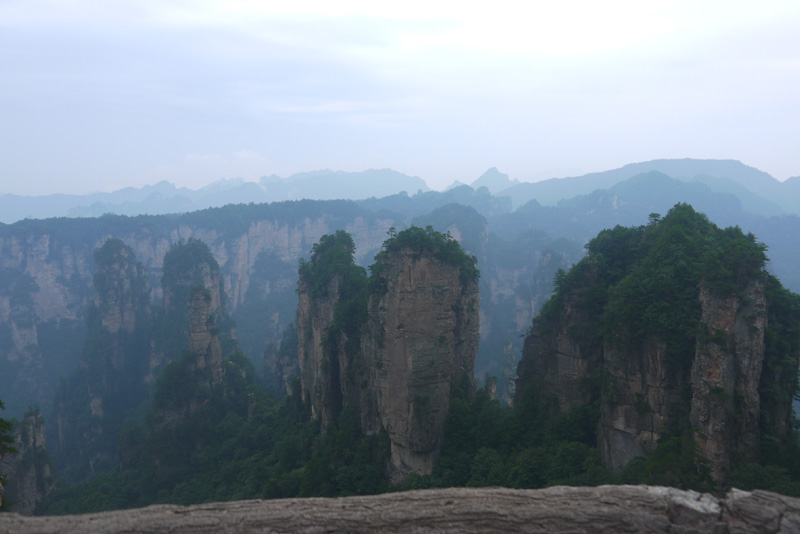 我們的第二站:袁家界。在這里,我感受到了一個(gè)現(xiàn)代高科技帶來(lái)的震撼。站在高度300多米的百龍?zhí)焯莸耐该飨潴w里,隨著天梯的緩緩上升,我們就像鳥(niǎo)兒一樣穿出山體,劈開(kāi)云霧,沖天而起,一種從未有過(guò)的刺激感引得我們聲聲尖叫。到達(dá)山頂,一排排石巖赫然展現(xiàn)在我們眼前,高低錯(cuò)落,森然有序,儼然列隊(duì)的將士,聽(tīng)導(dǎo)游說(shuō),這便是48將軍巖,真是“壯如其名”。