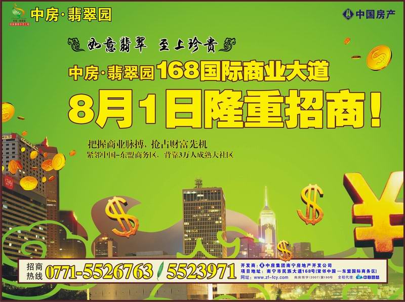 中房翡翠園168國(guó)際商業(yè)大道8月1日隆重招商