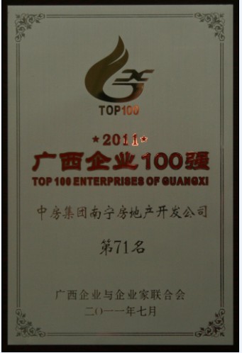 728,廣西企業(yè)與企業(yè)家聯(lián)合會在桂林發(fā)布了2011年廣西100強企業(yè)名單,中房集團南寧房地產(chǎn)開發(fā)公司榮登2011廣西企業(yè)百強榜,名列第71位。
